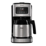 Descripción Coffee Maker Eléctrico con pantalla tíctil Jarra térmica de acero inoxidable de doble pared, que mantiene el café caliente hasta 2 horas Filtro permanente Preparación programable para configurar tu café, para la hora mas conveniente – selector de intensidad para un café mas intenso Función pausa para servir, te permite parar el proceso para disfrutar de una taza de café durante la preparación Incluye: cuchara medidora para evitar desperdicios de café Características Marca Oster Número de parte BVSTDC4404-013 Material Acero inoxidable Capacidad 8 tazas Pantalla Tíctil Potencia 900 W Programable Sí Auto apagado No Luz de encendido/apagado Sí Auto limpieza No Función de espuma de leche No Incluye accesorios Sí Compatible con cípsulas No Voltaje 127 V, 220 V Dimensiones 47.30 x 27 x 38.98 cm Peso 2.19 kg Ver mís En la Caja 1x Oster Coffee Maker Eléctrico Programable 8 Tazas (BVSTDC4404) 1x Cuchara medidora 1x Jarra acero inoxidable 1x Filtro permanente 1x Manual de usuario
