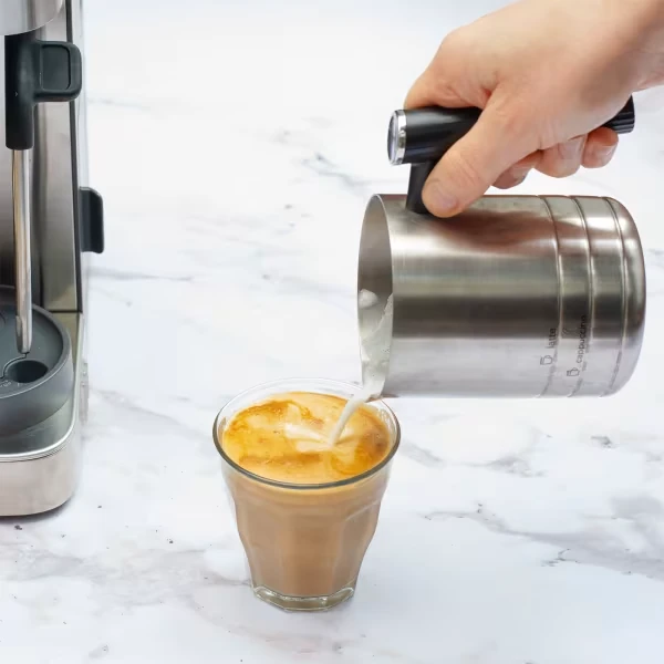 - Preparación de espuma manos libres: vaporiza y bate para obtener una microespuma supersuave con leche o bebidas vegetales.